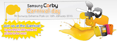 Tidak lama selepas itu Nuffnang buat Samsung Corby Carnival Day. Pada awalnya aku berasa rendah diri sangat coz orang lain post dalam bi. Aku ni dah la lemah bi. Dapat Ben10 dalam muet.haha..Tapi Nuffnang kata boleh jer tulis dalam bm. Aku pon join la tanpa rasa rendah diri. Time tu x kenal pon sape otai blogger or bloggers tegar. Jadi tak der la rasa rendah diri or segan bergaul dengan diorang coz event ni berkumpulan.