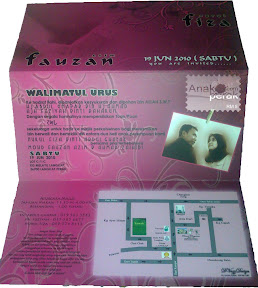 Selamat Pengantin baru juga buat Fiza dan Fauzan. Kedua-dua mempelai ini juga sepejabat di Majlis Perbandaran Manjung. Aku kenal semasa praktikal disana. Mereka akan melangsungkan perkahwinan pada 19 June 2010. Insyallah aku akan pergi juga.