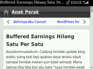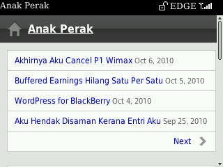 Semenjak pakai BlackBerry ini aku berminat pulak mengkaji teknologi mobile ini. Kini blog aku boleh di support untuk paparan mobile. Berbeza dengan paparan web biasa, paparan mobile ini memudahkan pengguna telefon bimbit untuk membuka blog aku tanpa menunggu lama untuk loading kerana template digunakan adalah simple. Jadi bukalah browser telefon bimbit anda dan layanlah blog Anak Perak dot ini secara mobile dan jangan lupa bookmark di telefon bimbit korang :biggrin: