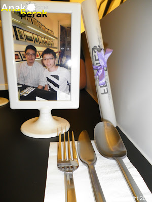 Inilah meja aku, yang macam scroll ijazah tu adalah menu. Sementara tunggu event bermula baik order makanan dulu. Takder la lama sangat menunggu nanti.